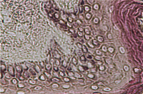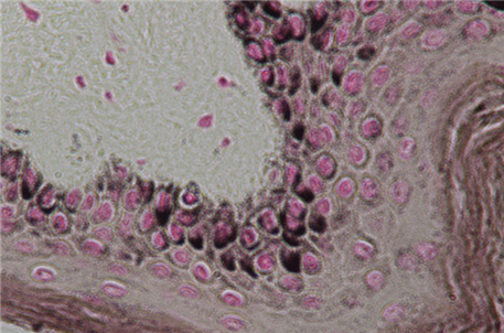 (B) 효소 처리 후 멜라닌이 탈색된 피부세포