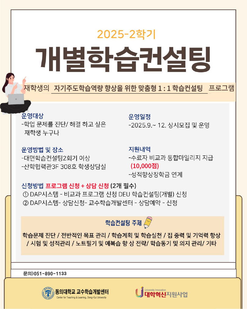 [학습지원] 2025-2학기 개별학습컨설팅 신청 안내