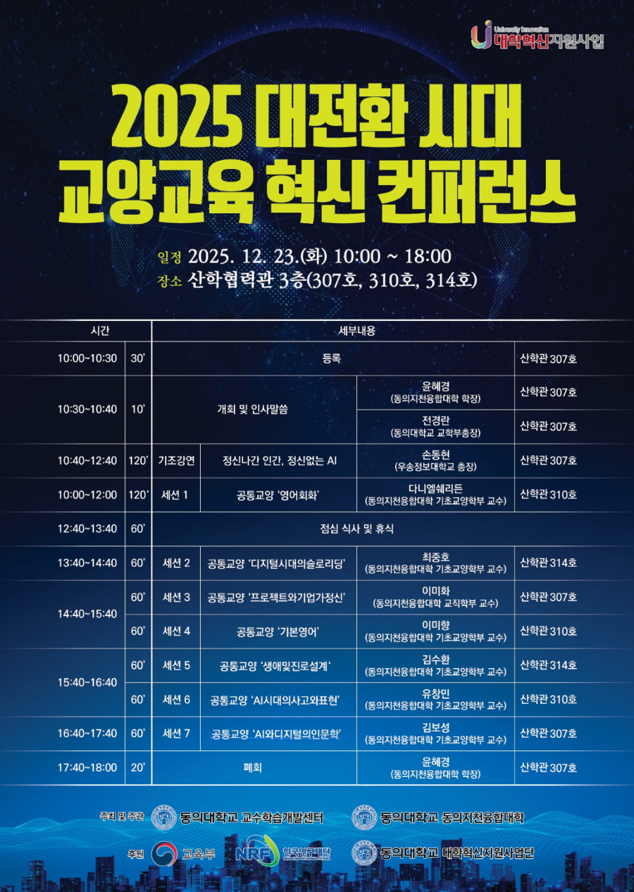 교수학습개발센터는 2025년 12월 23일(화)에 2025 대전환 시대 교양교육 혁신 컨퍼런스를 개최합니다.