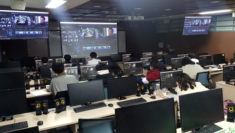 디지털콘텐츠학전공은 전문적인 영상콘텐츠제작을 위한 3개의 전용 실험실습실과 이론강의를 위한 첨단강의실을 운영하고 있으며 고해상도 촬영 편집 장비와 드론 촬영 시스템 등 최첨단 기자재를 보유하고 있습니다. 또한 2D/3D영상콘텐츠제작 연구실(취업동아리)인 Studio718과 영상 및 사진 촬영 연구실(봉사동아리) 등 지도교수별 연구 및 동아리 활동이 이루어집니다.