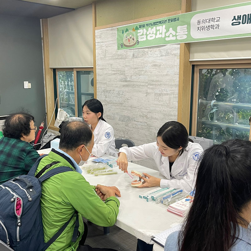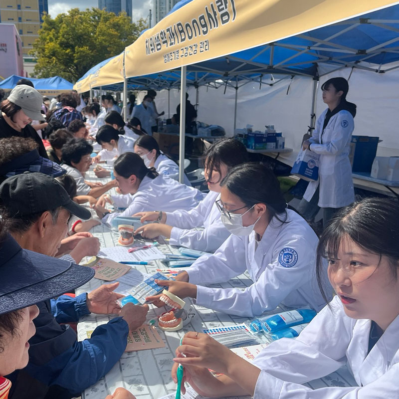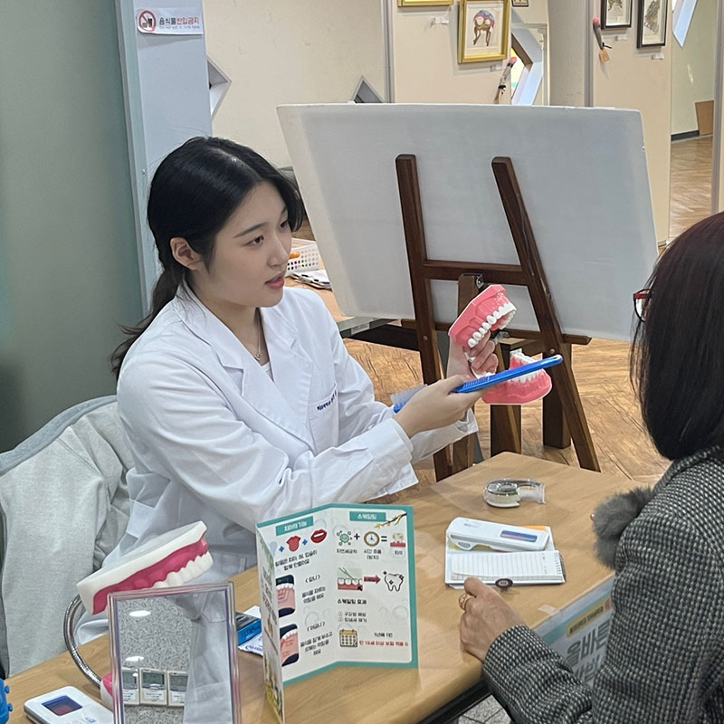 - 2023 - 동의동락 프로젝트 및 마음안녕 프로젝트 참여로 지역주민 구강건강관리 교육 실시- 구강건강관리프로그램 정기봉사활동(좌천동,뇌병변복지관) 참여- ‘올바른 구강건강관리‘를 주제로 구강보건교육 리플렛 제작