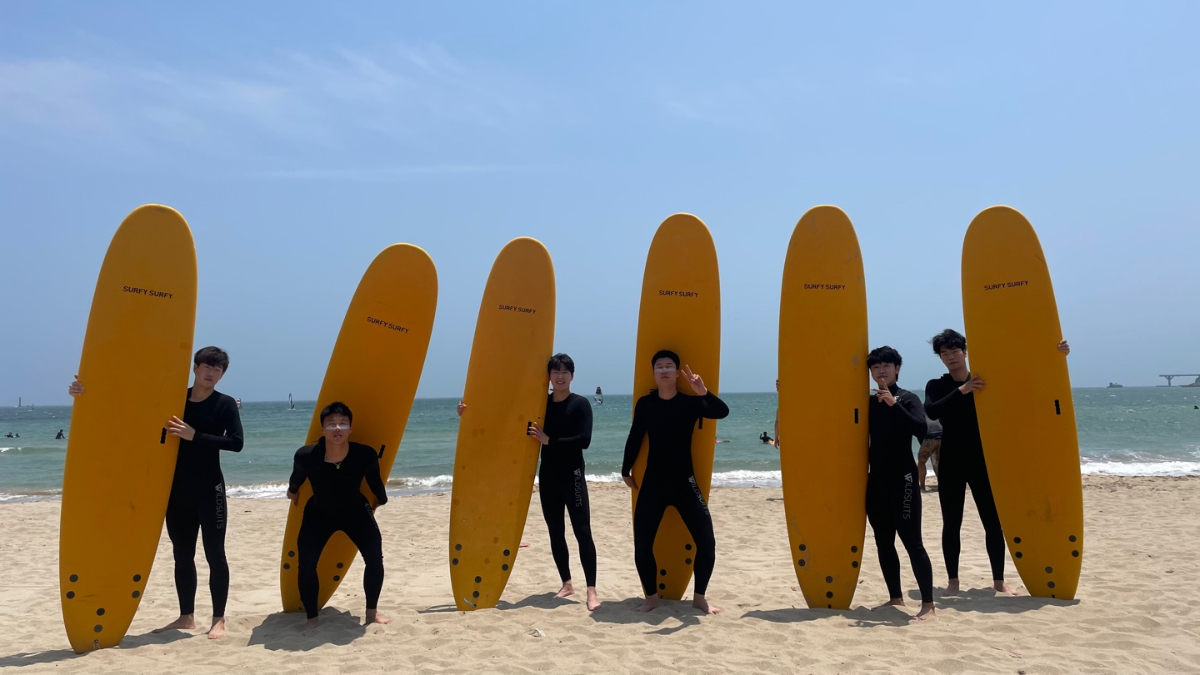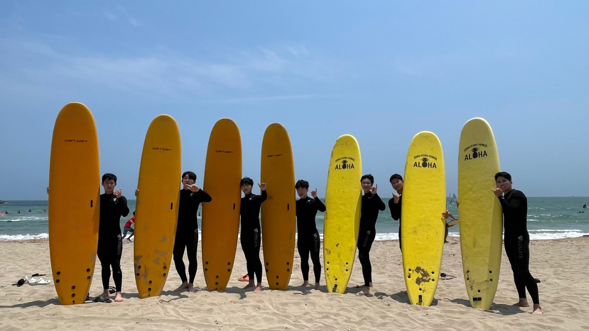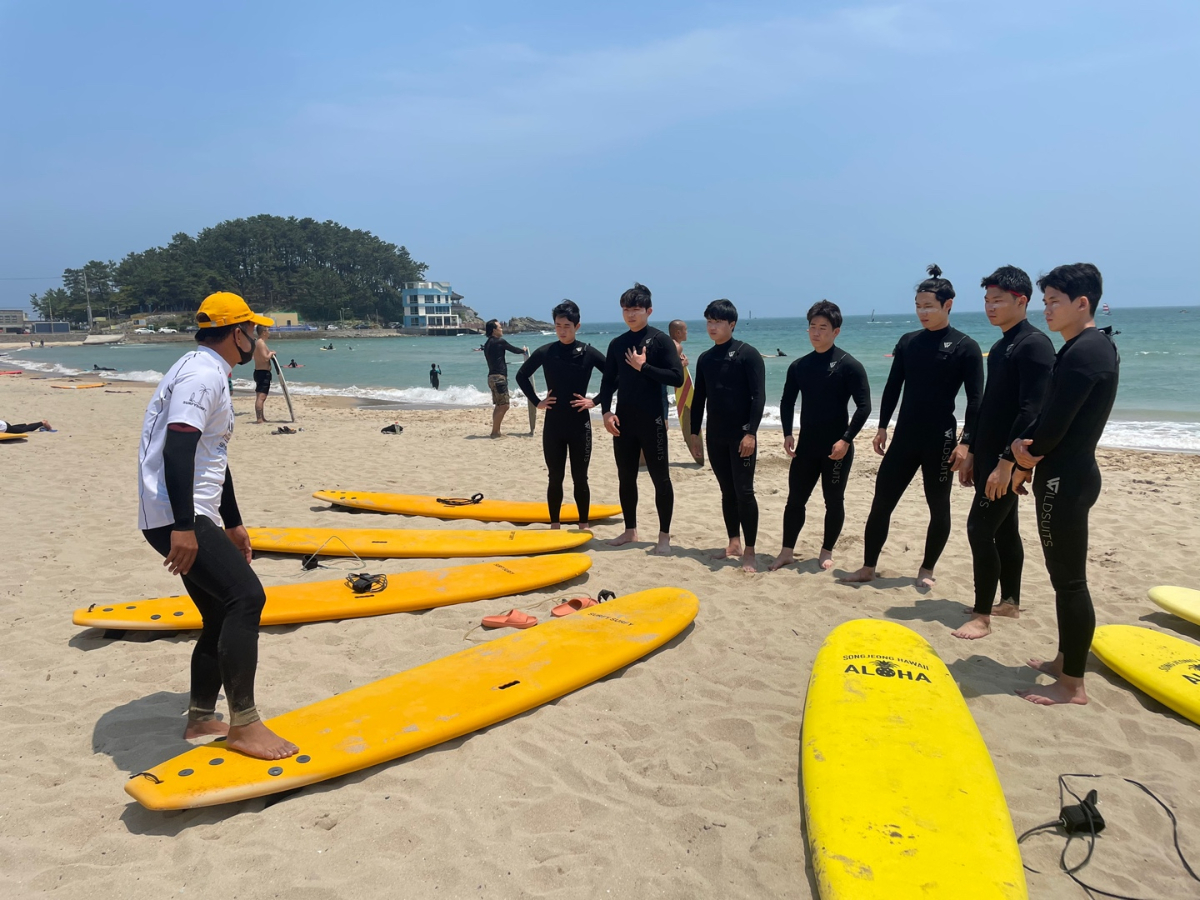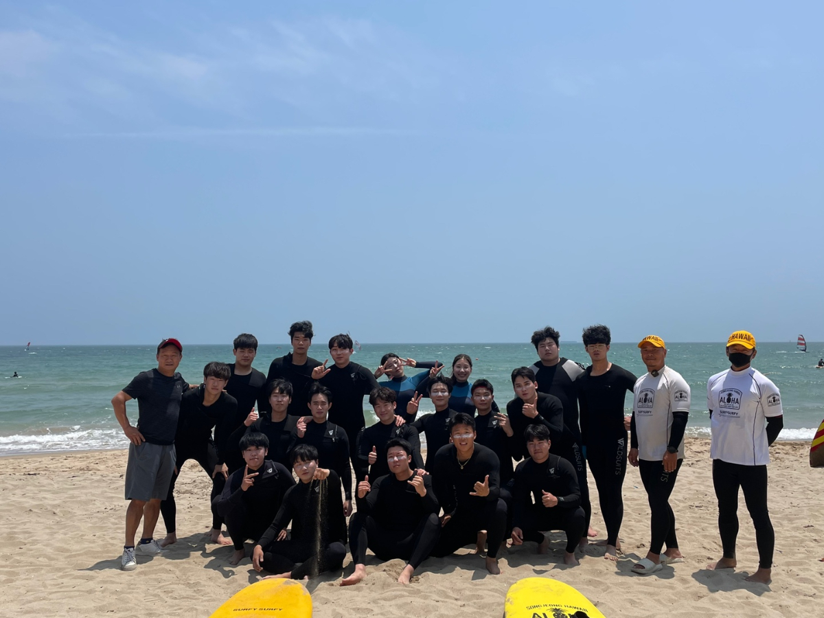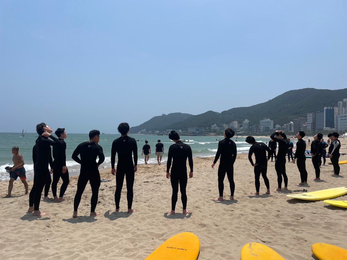 2022년 6월 22일-23일 양일 간 하계스포츠 수업을 부산 송정 해수욕장에서 진행했습니다