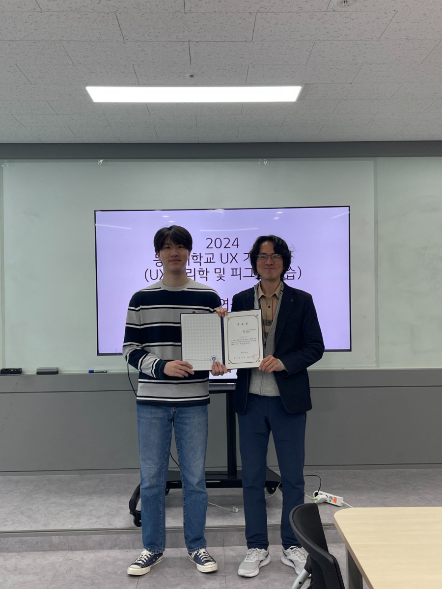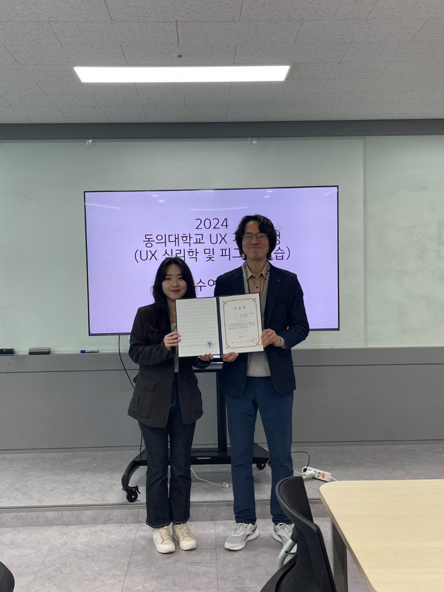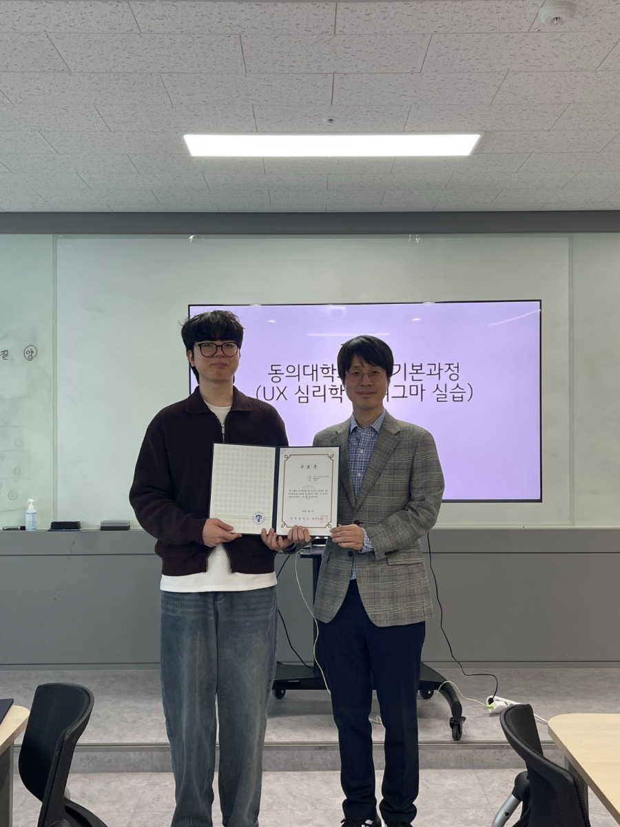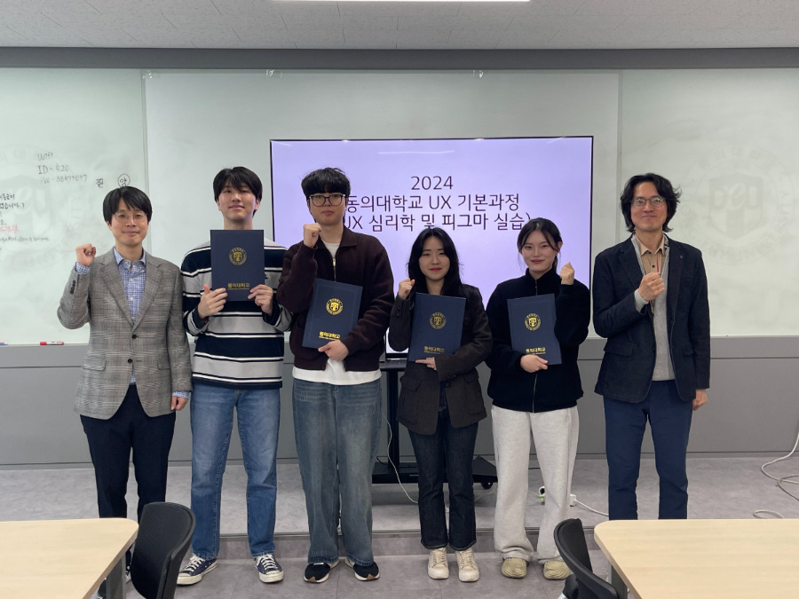 UX 연구소에서 주관하는 UX 스터디(UX 심리학 및 Figma 실습)를 수료한 학생들의 수료증 수여식이 4월 2일 지천관 521호에서 진행되었다.
