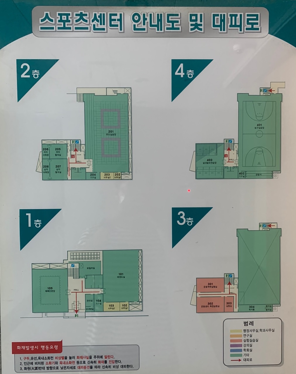 스포츠센터 -위치, 담당, 사진에관한 안내표입니다.