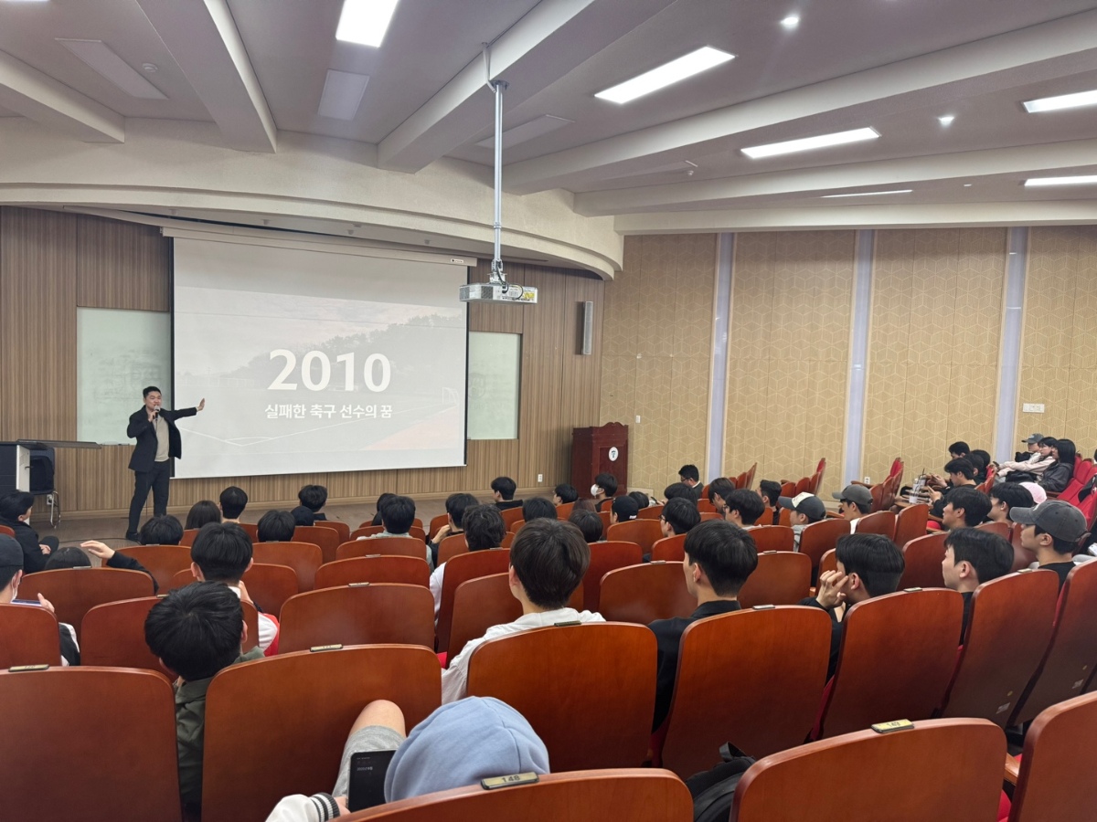 이날 주원우 대한축구협회 전임연구원께서 스포츠분석 관련 특강을 통해 직업의 이해와 진로설정 등에 관하여 특강을 진행하셨습니다.