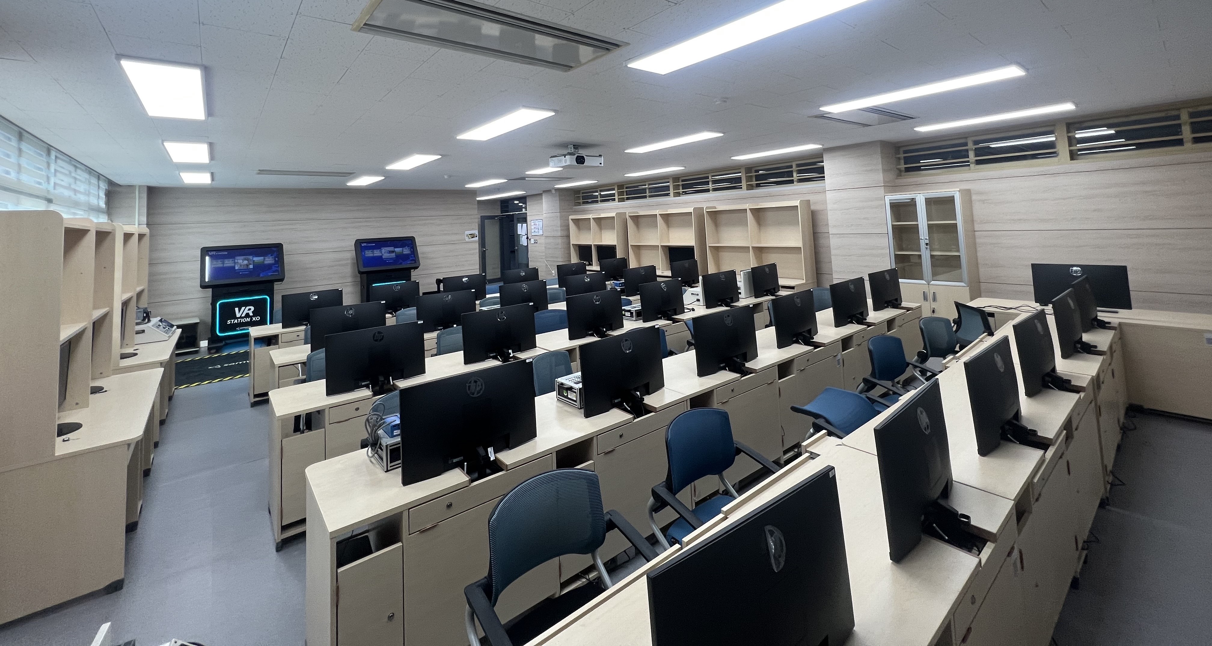 인공지능, 지능형 로봇, 스마트 공장 등 제4차 산업혁명을 주도하는 산업의 발전과 비대면 산업의 성장에 따라 스마트IT제조기술의 디지털 전환 필요성이 높아지고 있습니다. 디지털 트윈은 사물인터넷(IoT), 확장현실기술(XR), 인공지능(AI) 기술과 접목하여 시스템 수준에서 센서/IoT 기기, 데이터 분석, 데이터 스토리지 및 머신 러닝(ML)을 통합 가능한 핵심 기술입니다. 자동화 실험실에서는 디지털 기반 스마트IT제조기술을 위한 디지털 트윈 전문 인력 양성을 목표로 인공지능, 지능형 로봇, 가상현실, VR 등 디지털 트윈 기반 융합 역량 교육을 실습하고, 공장자동화(FA)를 구성하는 두뇌 장치인 PLC(Programmable Logic Controller) 운용기술 실험과 3축 직교좌표 로봇을 수치제어(Numerical Control) 기술로 제어하는 내용도 실습합니다.
