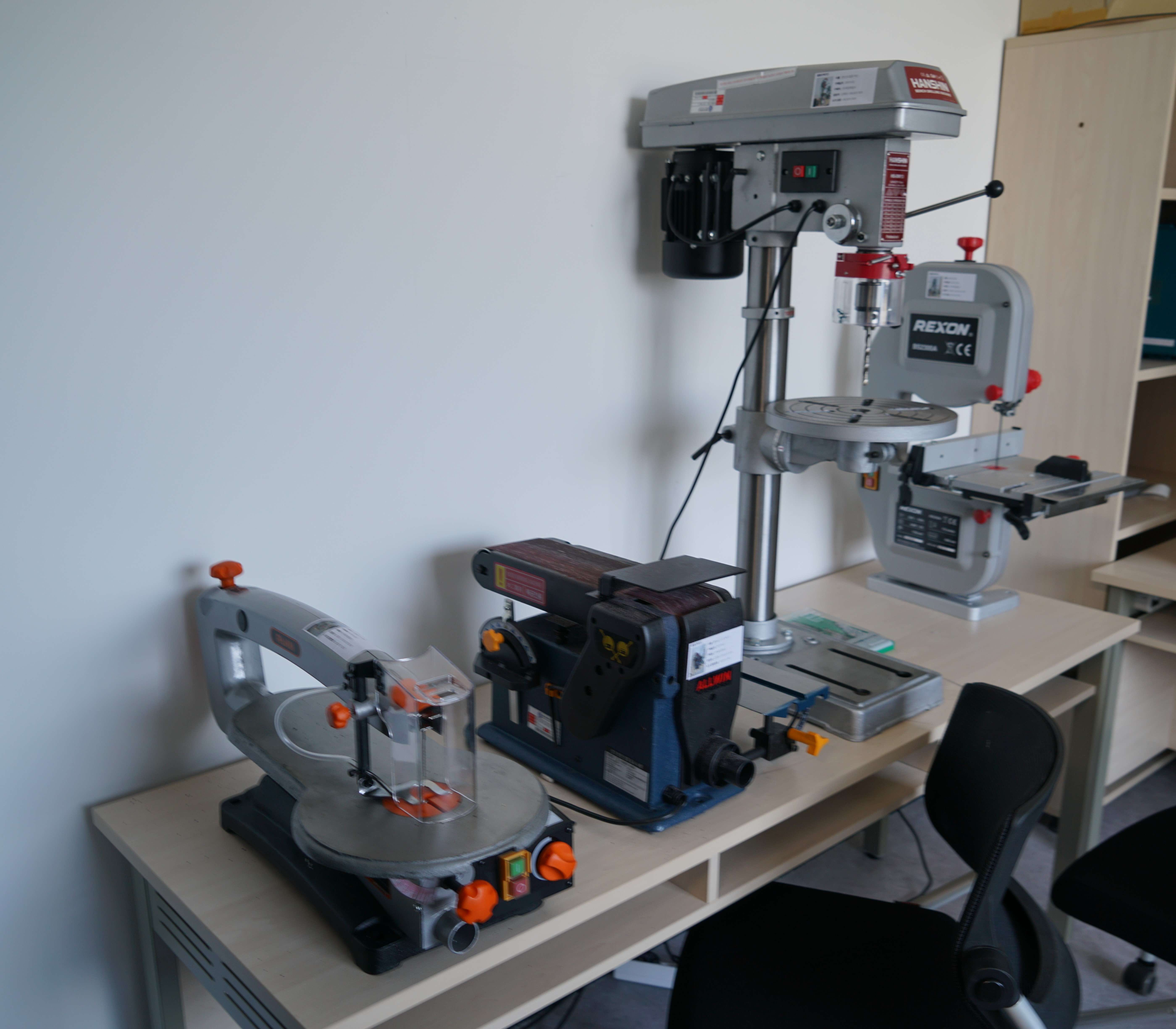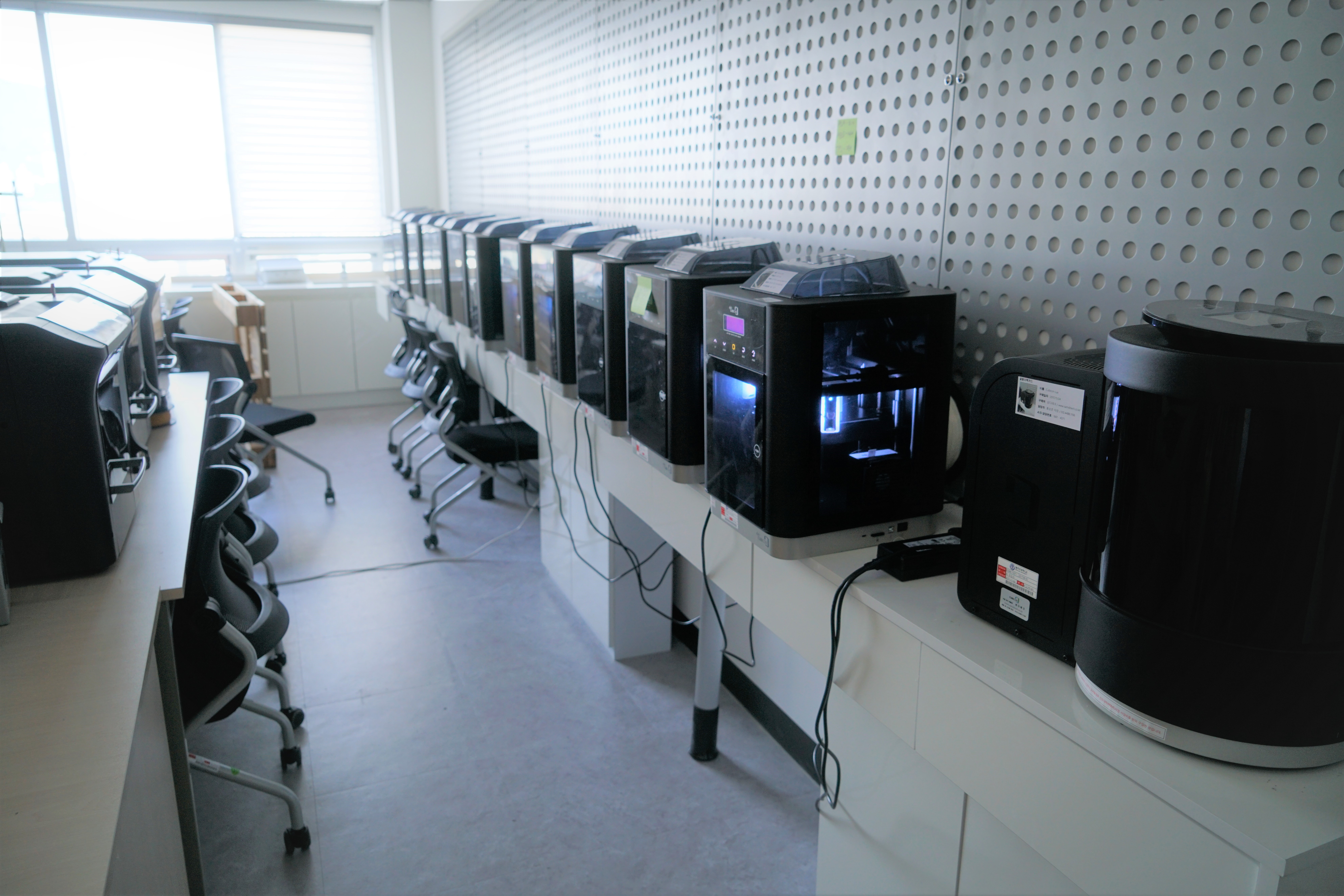 3D프린터(대형, 소형), 신발, 가방-제작 공업용재봉틀 세트, 연마기계, 절단 기계 등 다양한 공작기구들로 제품디자인을 모형으로 제작하는 전용 실기실 입니다.