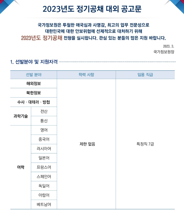 [국정원 FAQ] 정기공채 지원시 공인어학성적 관련
