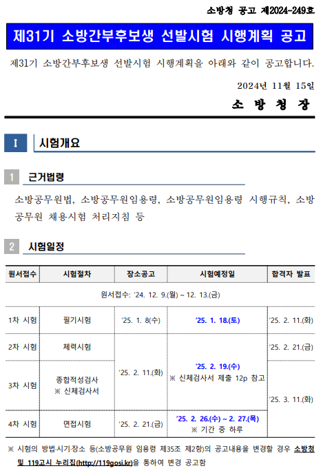 2025년 소방간부후보생(제31기) 선발시험 계획 공고