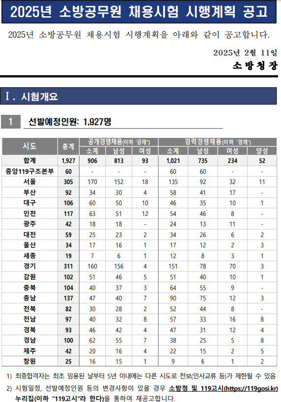 2025년 소방공무원 채용시험 시행계획 공고