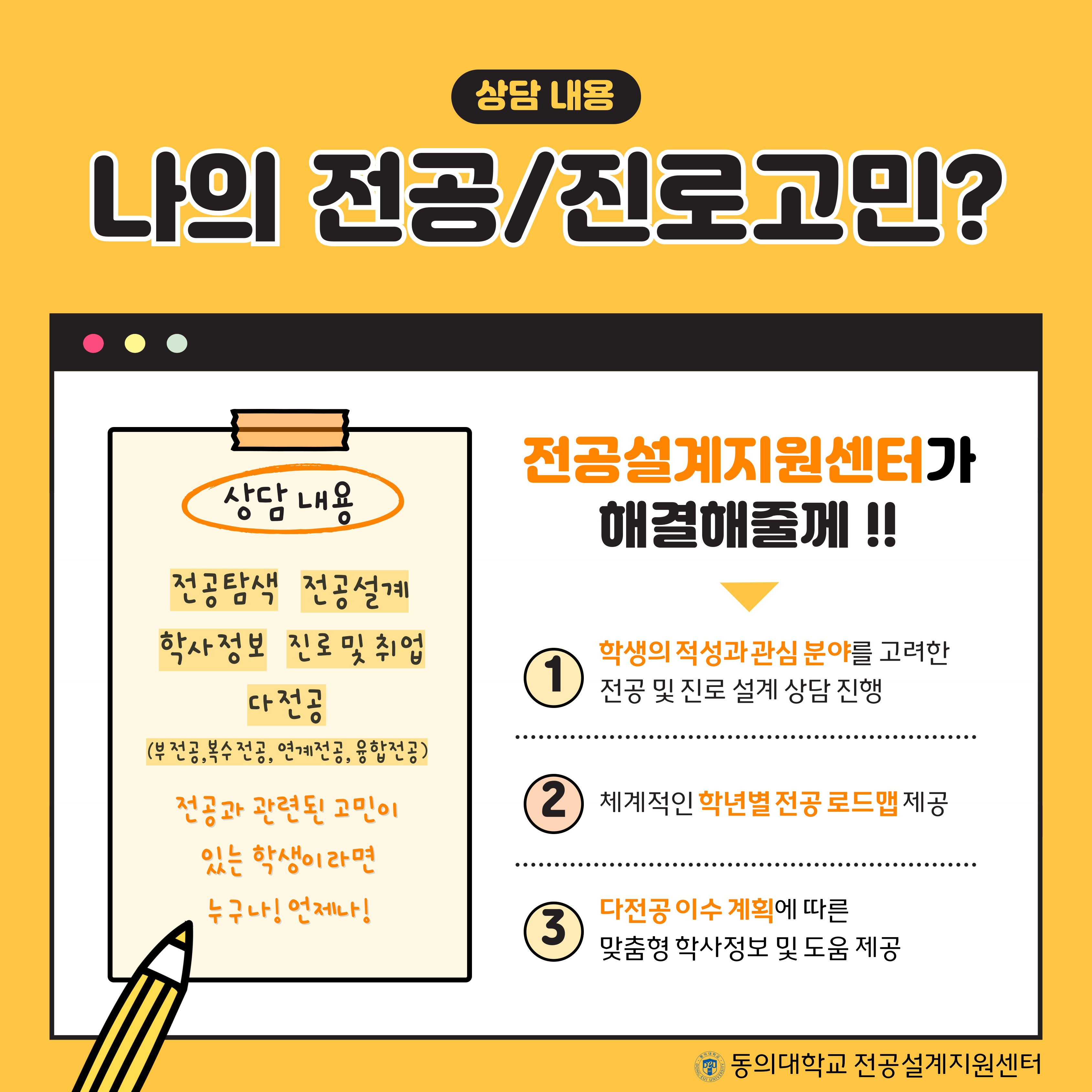 [전공설계지원센터] 상담 신청 안내 (전공 탐색 및 설계, 다전공, 진로 및 취업 등)